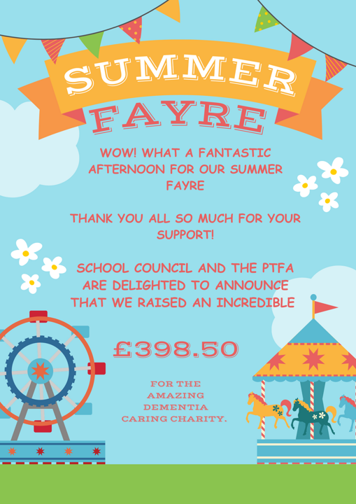 A massive thank you to the PTFA who provided refreshments an amazing raffle and brilliant inflatables and also supported the School Council in running the stalls.