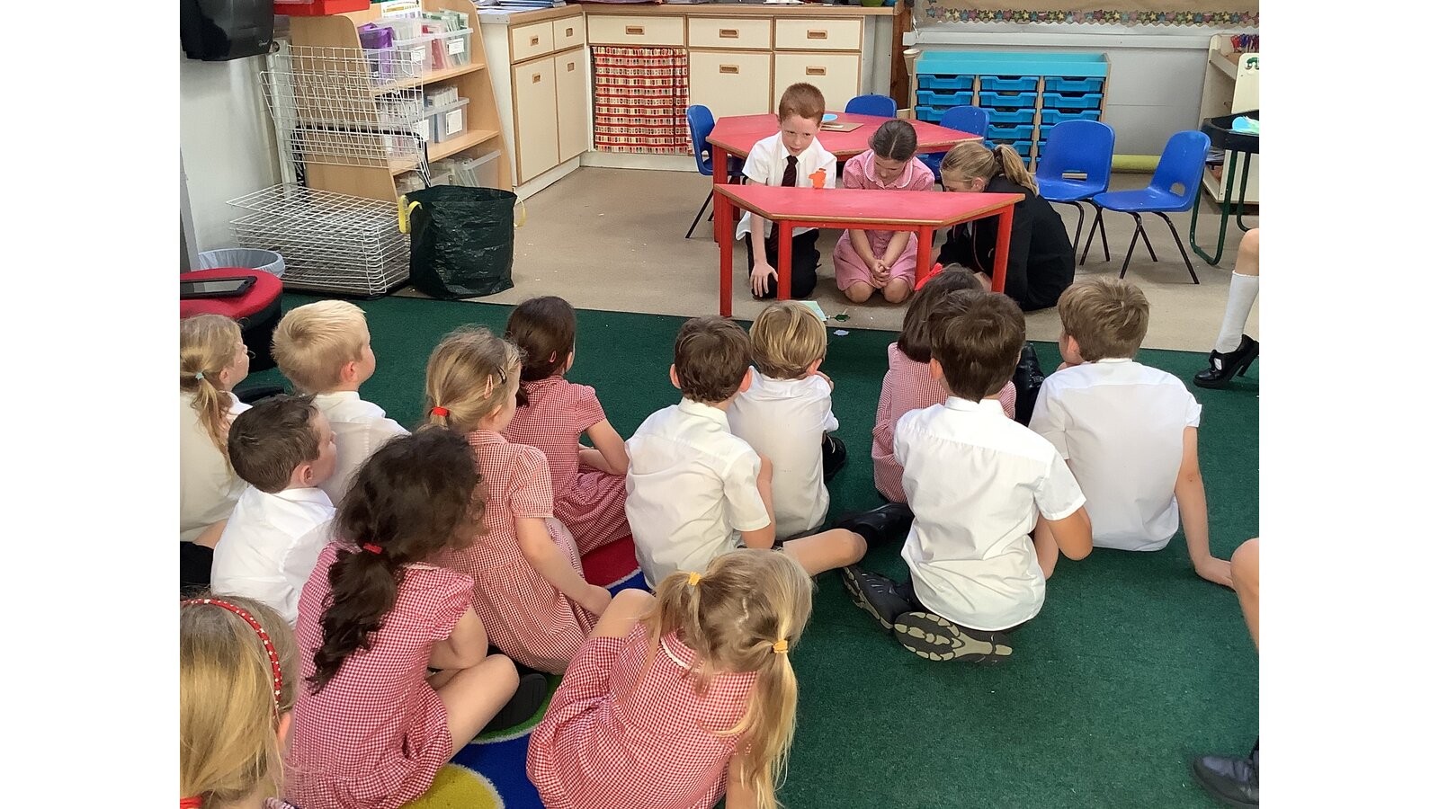 Class 2 worked very hard creating puppets to present the story Flower Power to class 1 children. All of the children retold the story and some even included songs that they had made up. Well done Class 2.