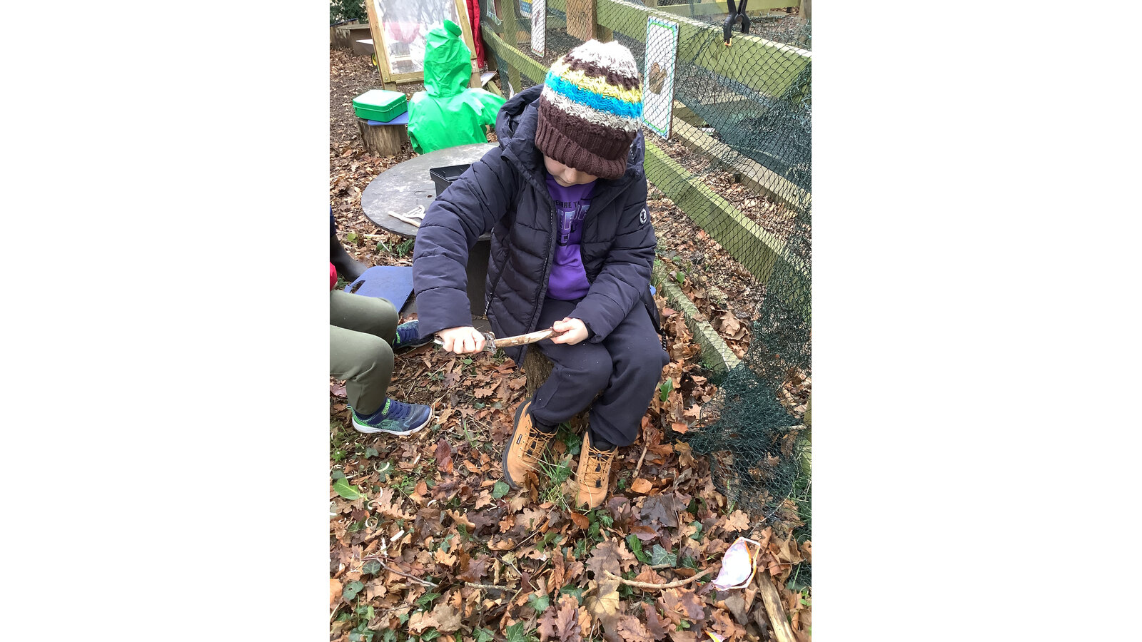 During our forest school sessions we have started looking at winter birds in Britain and tried to identify them. We have also had a go at weaving birds nests which proved quite tricky. The children have shown lots of interest in participating in the big bird watch, so it will be interesting to hear about what they see at home. They have also enjoyed the usual activities of exploring the mud kitchen recipes and activities, den building, construction of loose parts, tree climbing, bug hunting and carving.