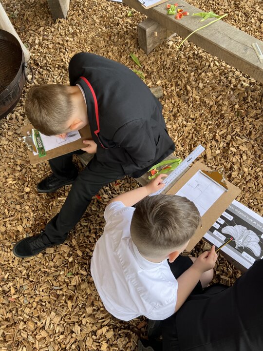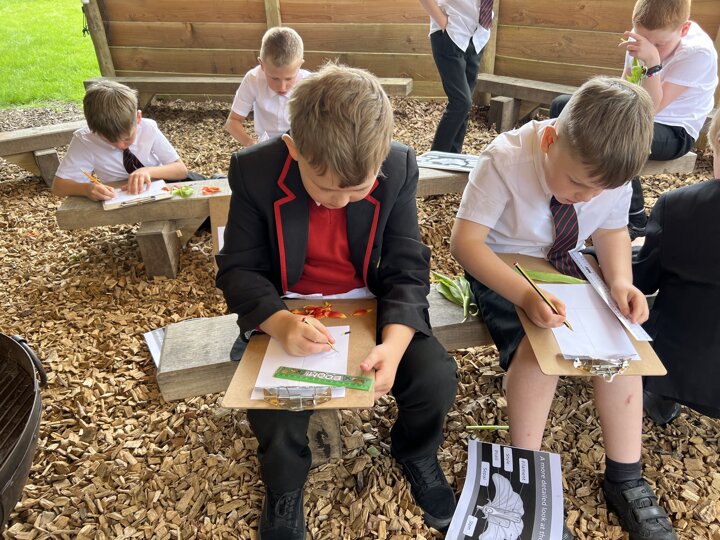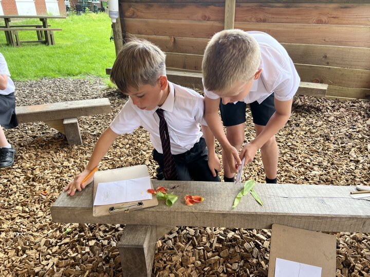 We explored the different parts of a flowering plant by carefully dissecting tulips and making observational drawings. We then labelled our diagrams using scientific language.
