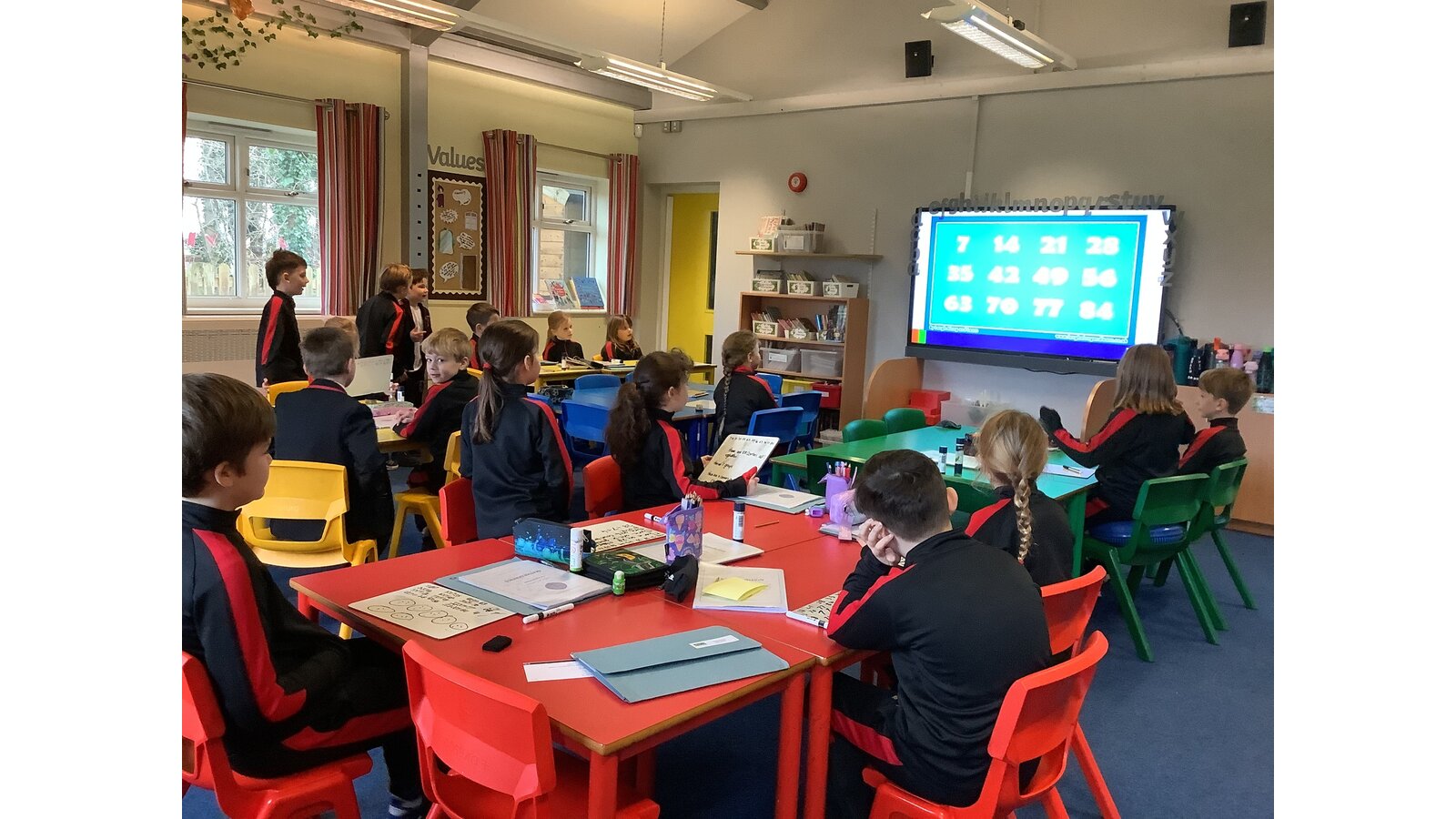 Maths is about having fun! Today class 2 danced, sang and played games to help them learn the 7 times table.