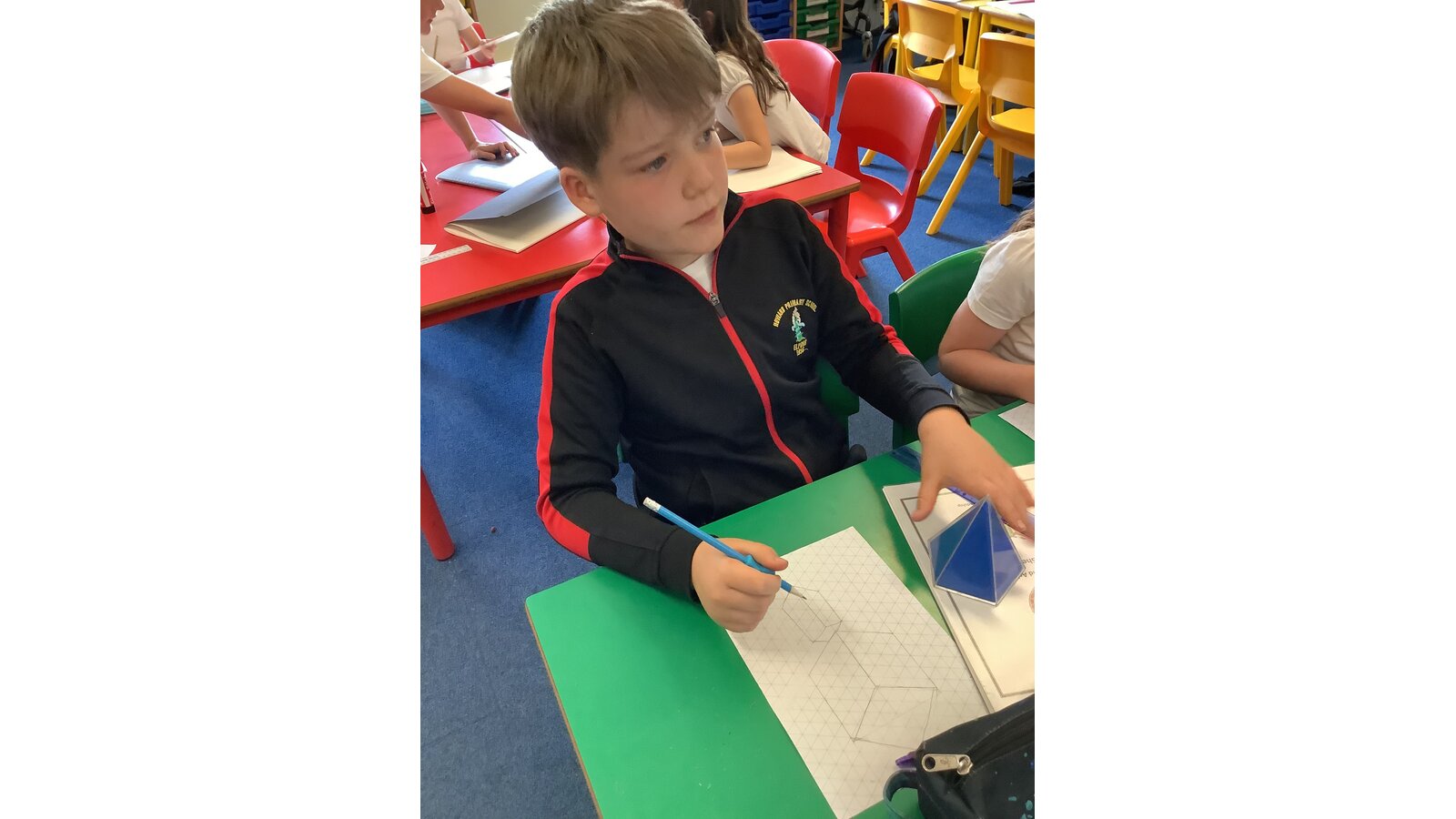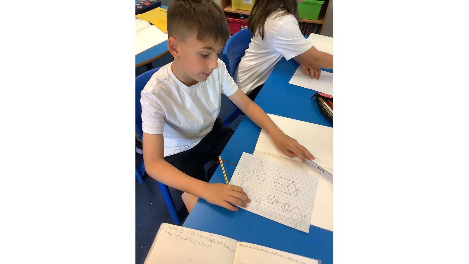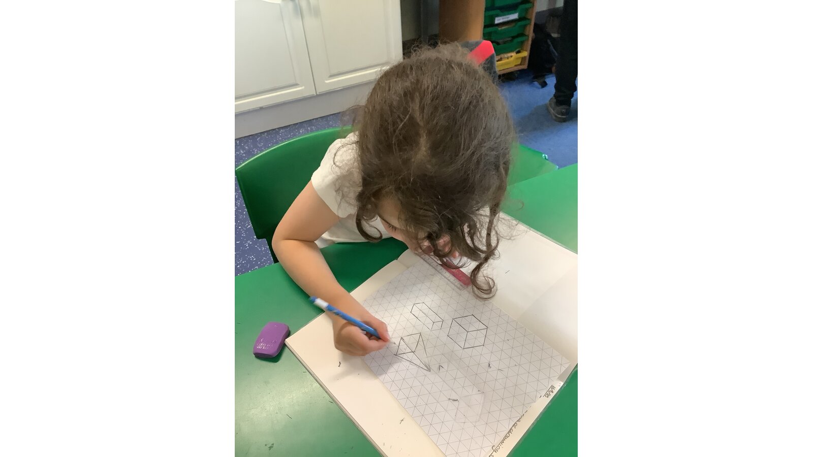 Class 2 have started their final art topic of the year - architecture. They have made mood boards combining their go rowing computing skills with their art skills and today they have used their mathematical knowledge of 3D shapes to help them draw 3D building outlines.