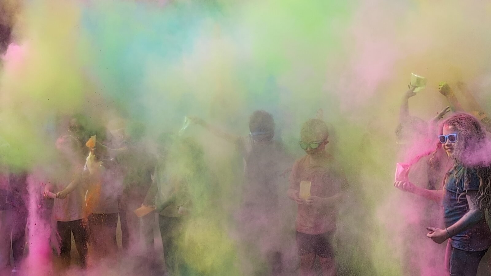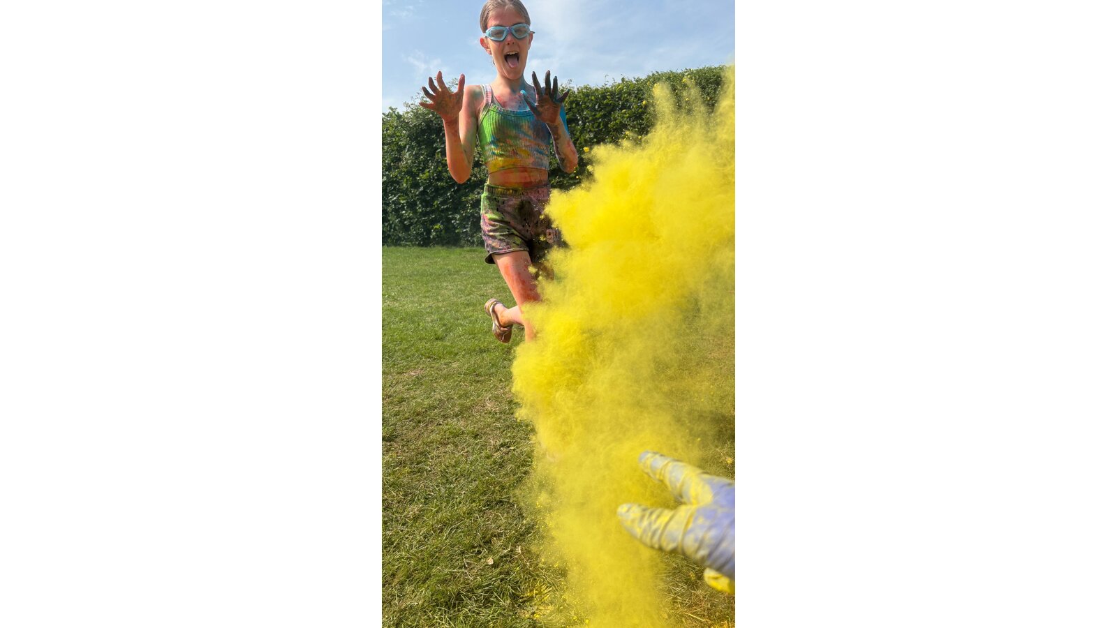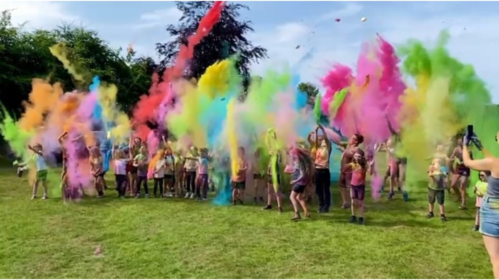 whole school colour throw, filling the air with a rainbow haze and squeals of delight. Many
