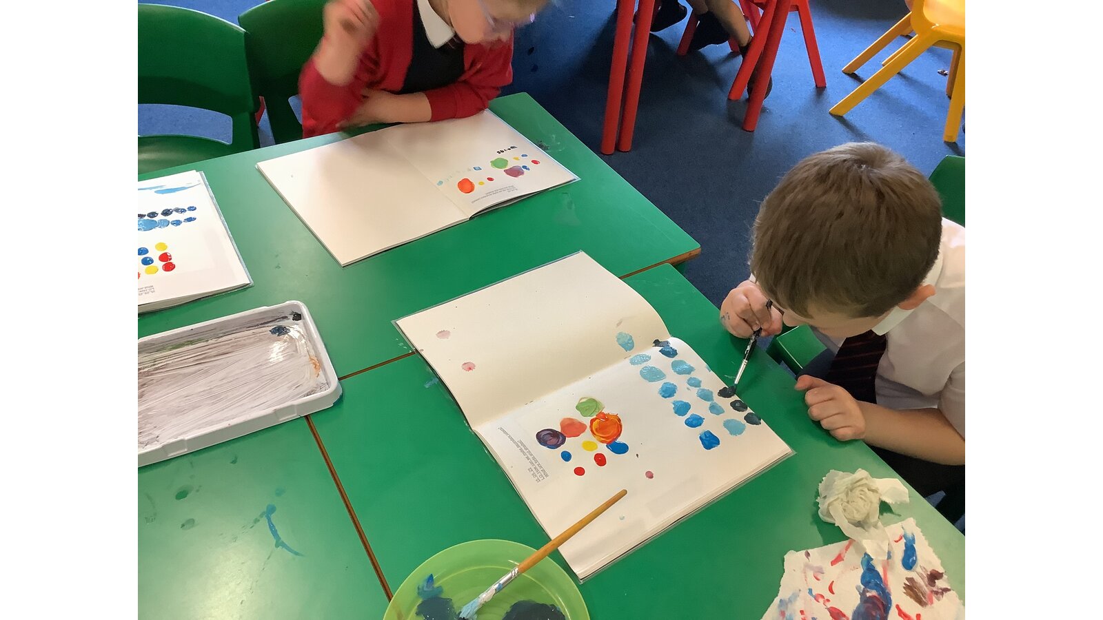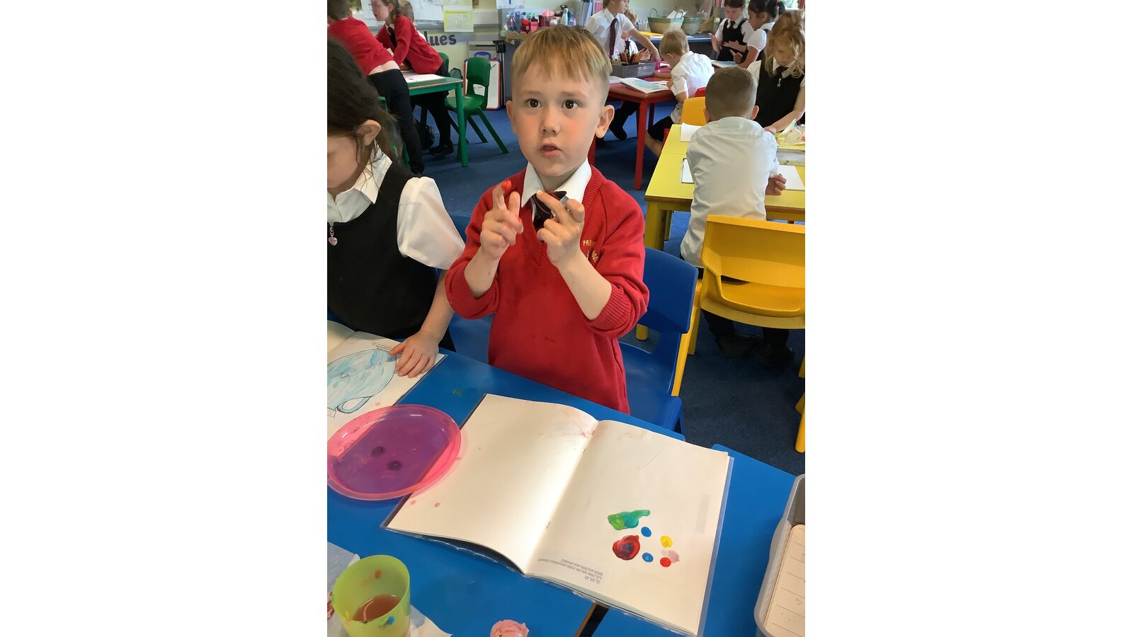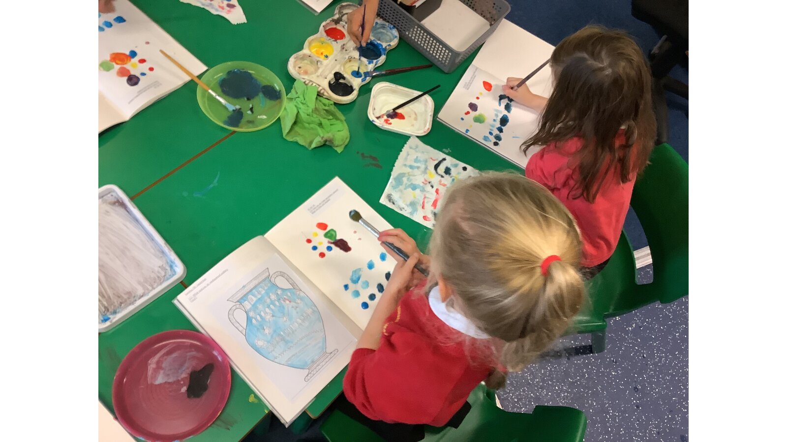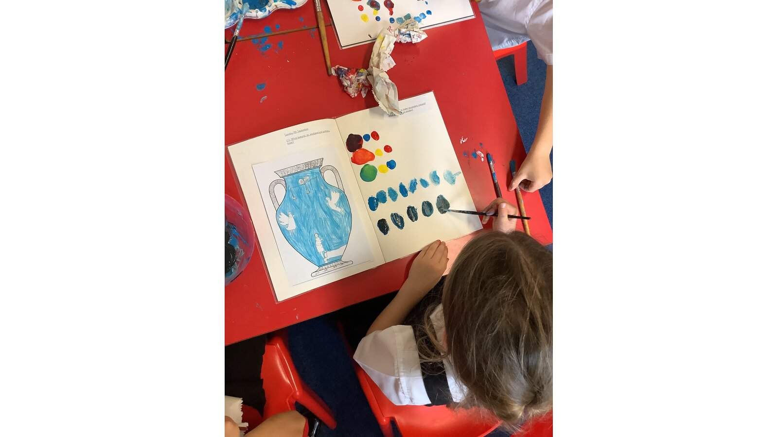 Class 2 have experimented with mixing primary colours to make secondary colours. They then explored tints and shades before finally making the perfect Wedgewood blue!