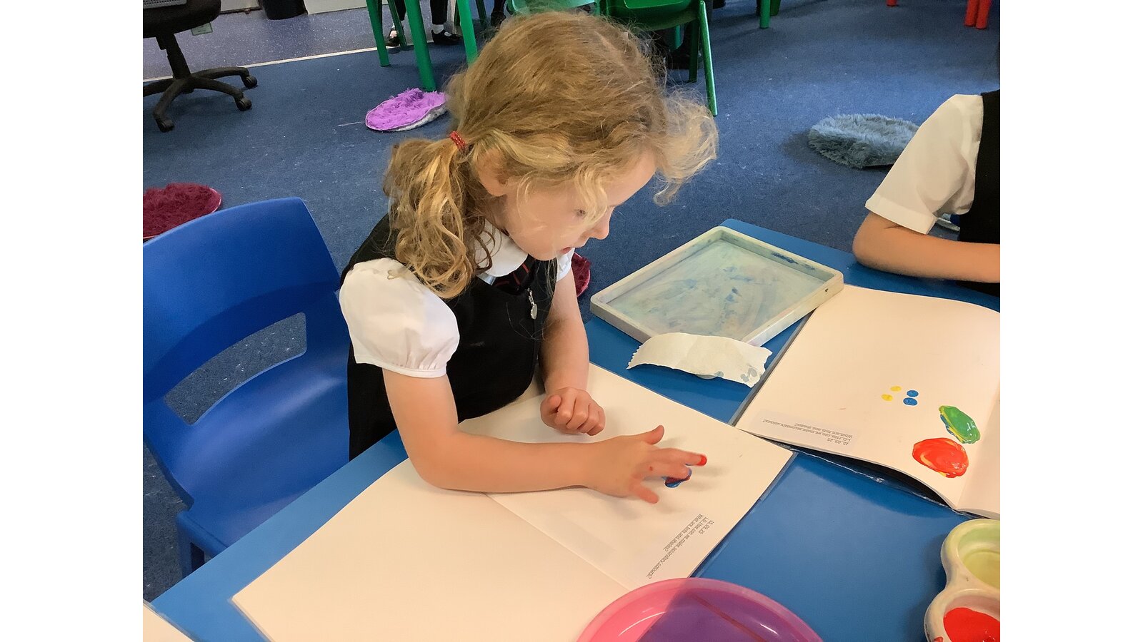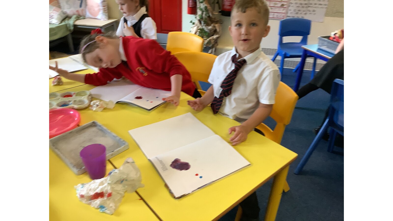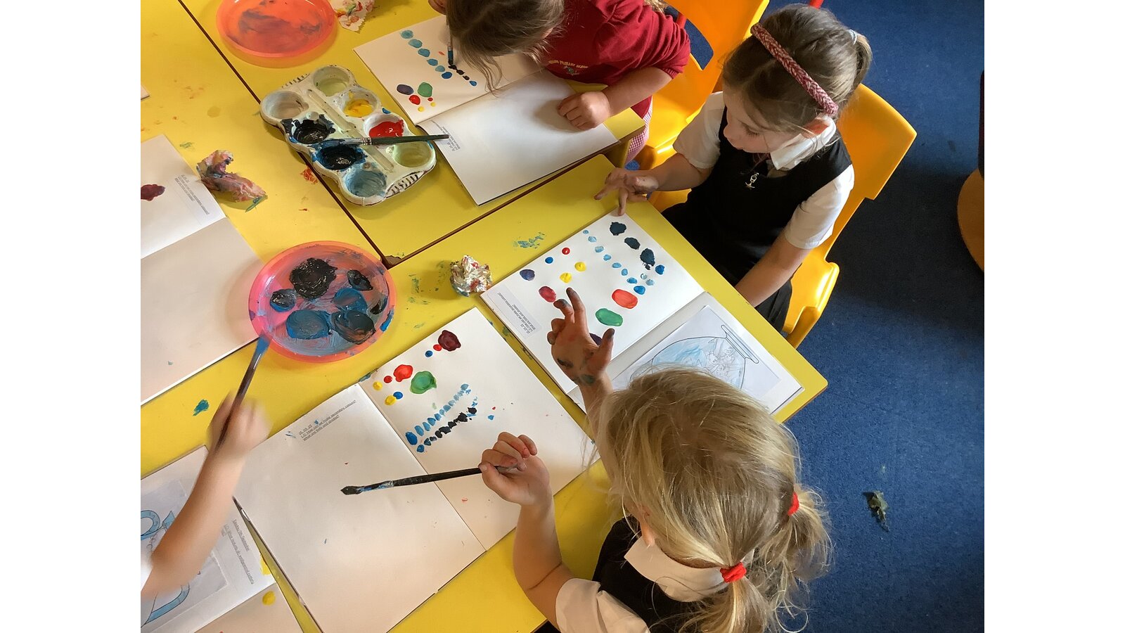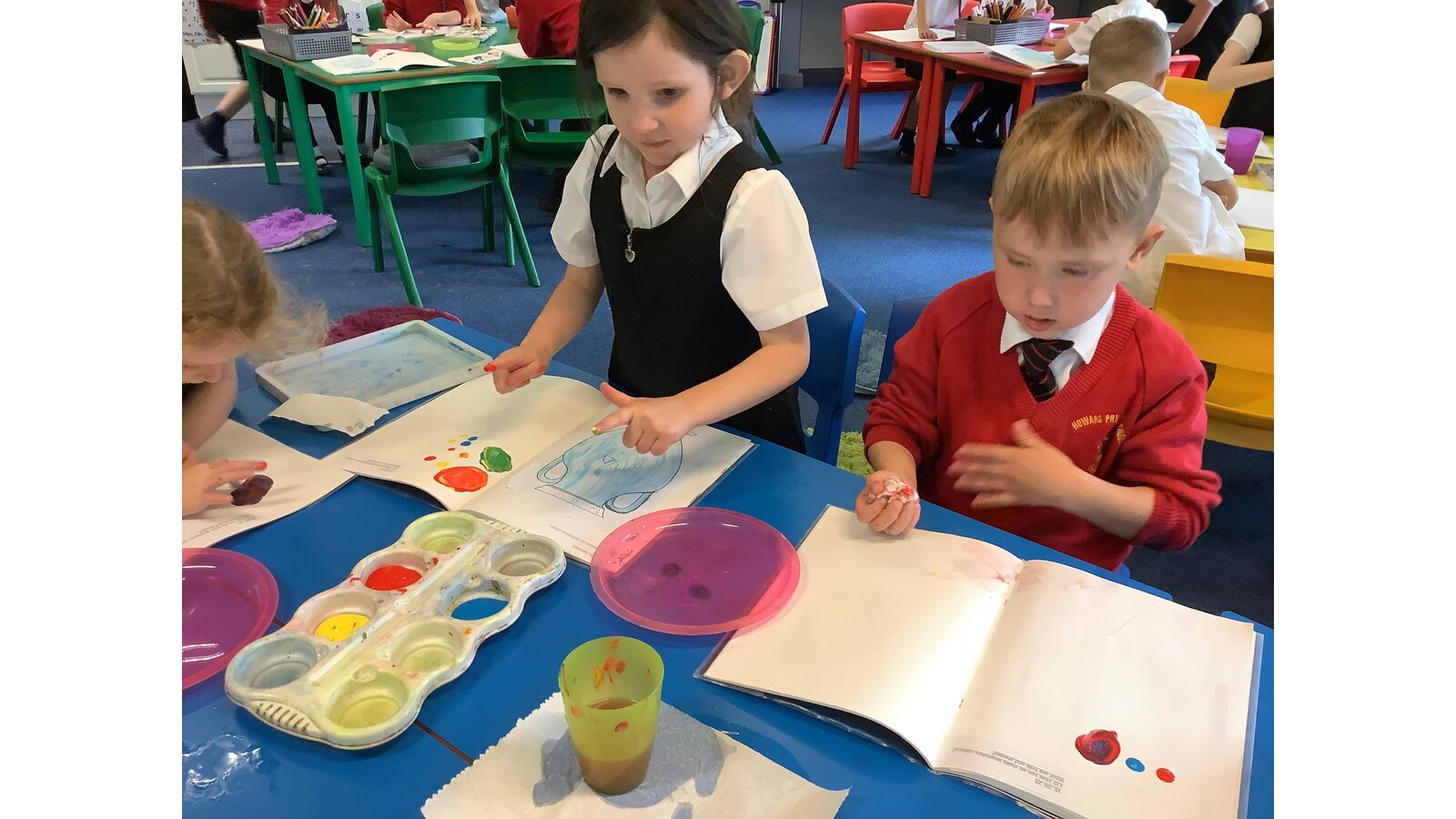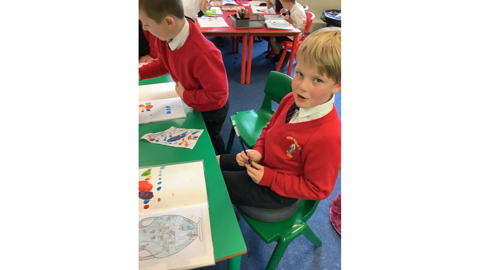 Class 2 have experimented with mixing primary colours to make secondary colours. They then explored tints and shades before finally making the perfect Wedgewood blue!