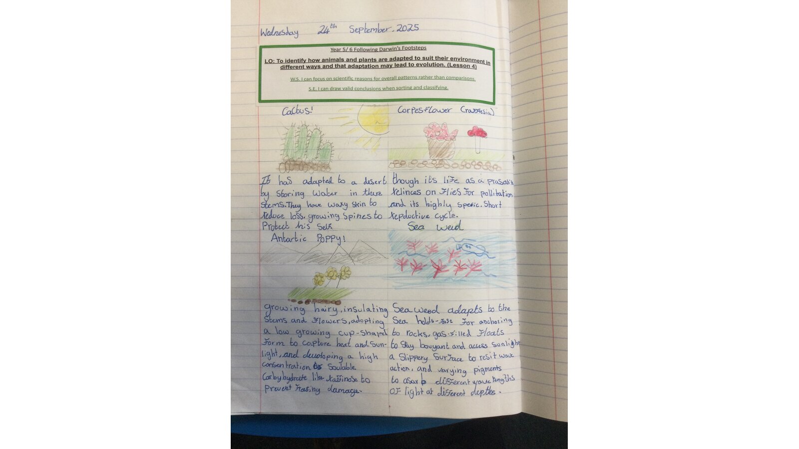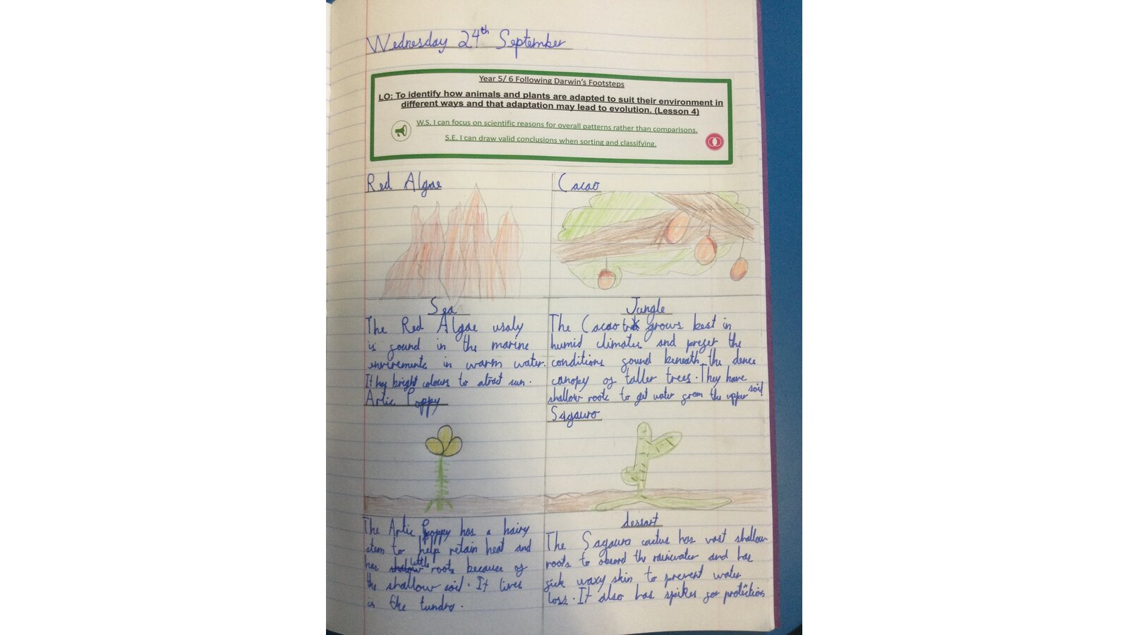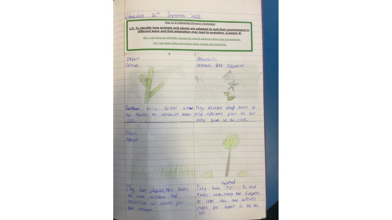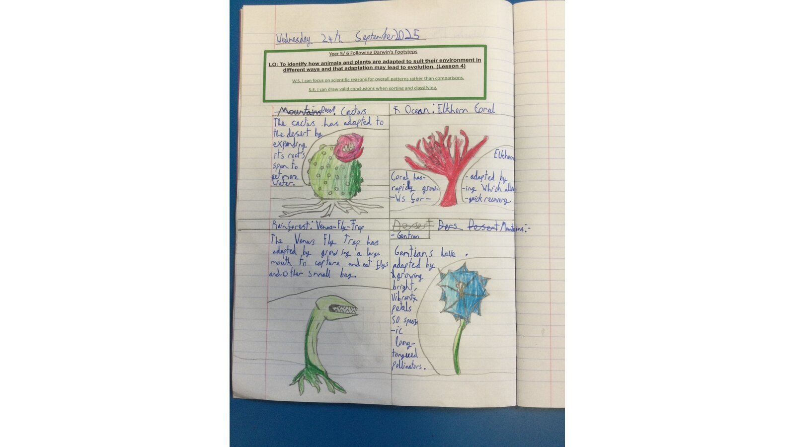 As part of our ongoing topic on Charles Darwin and the concept of evolution we have been looking at how animals have adapted to the environment in which they live. We have also been looking at the ways plants have to adapt to survive - sometimes in the harshest of conditions. We chose 4 different environments and had to find an example of a plant who has had to grow in a certain way to ensure it is able to cope with the elements.