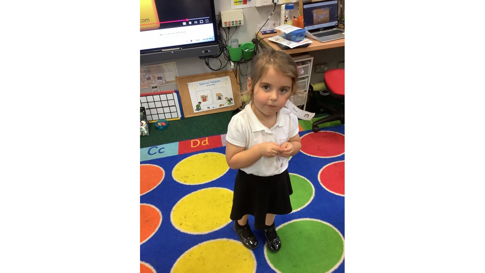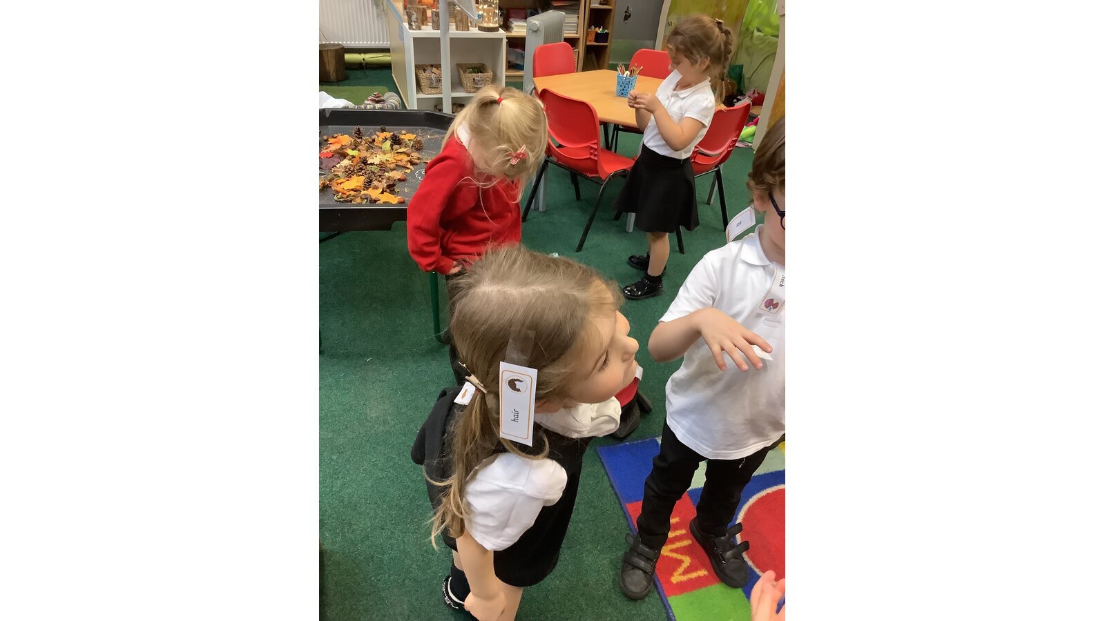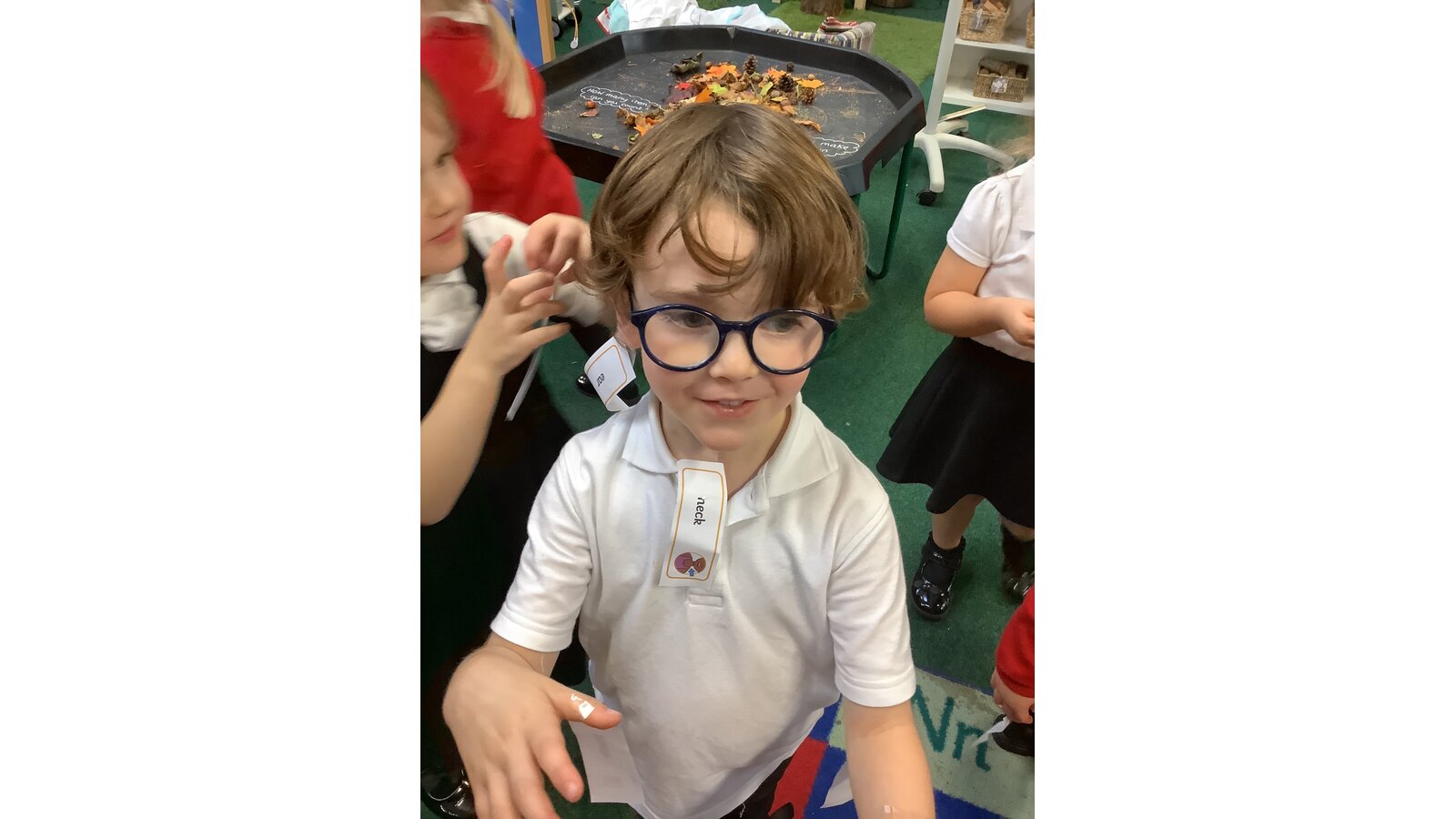 We had so much fun this afternoon in Class 1! This week we have been learning all about the body, in particular the skeleton. We have listened to stories and written about the characters from the Allan Alhberg, ‘Funny bones’ story books, our favourite being ‘Bumps in the night’. The children have loved listening to stories involving Big skeleton, Little skeleton and Dog skeleton. As part of our afternoon activities this week, the children were challenged to read and label Mrs Powles. They had so much fun sellotaping the labels to Mrs Powles. After labelling their teacher they decided it would be fun to label each other. They were brilliant at labelling the body parts that they could see and even some of the organs that we cannot see, such as the heart and brain. Great work Class 1!