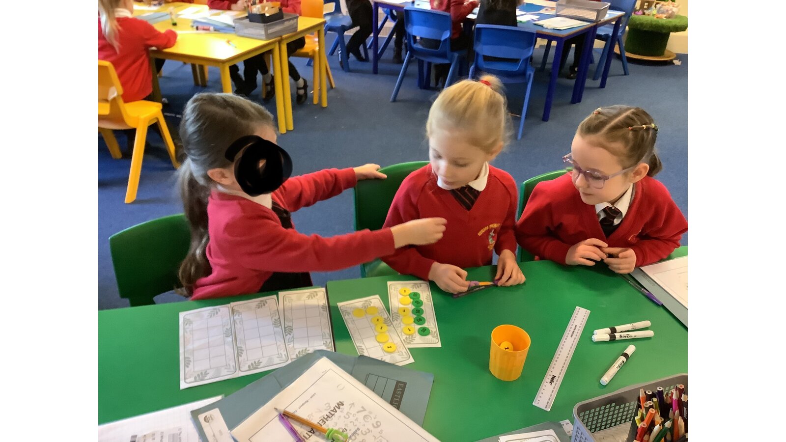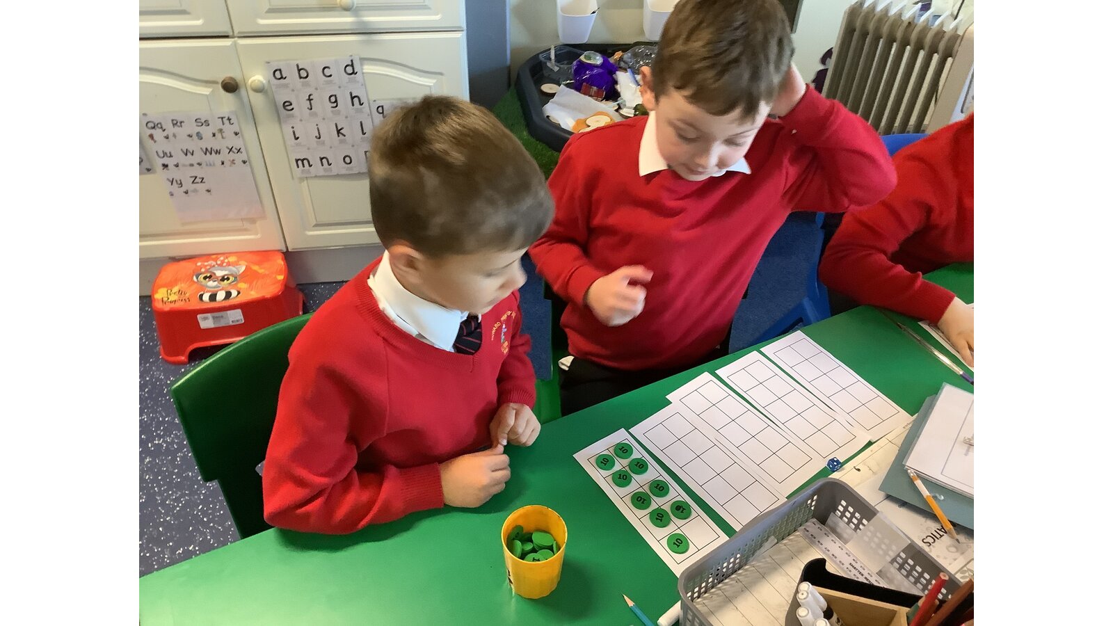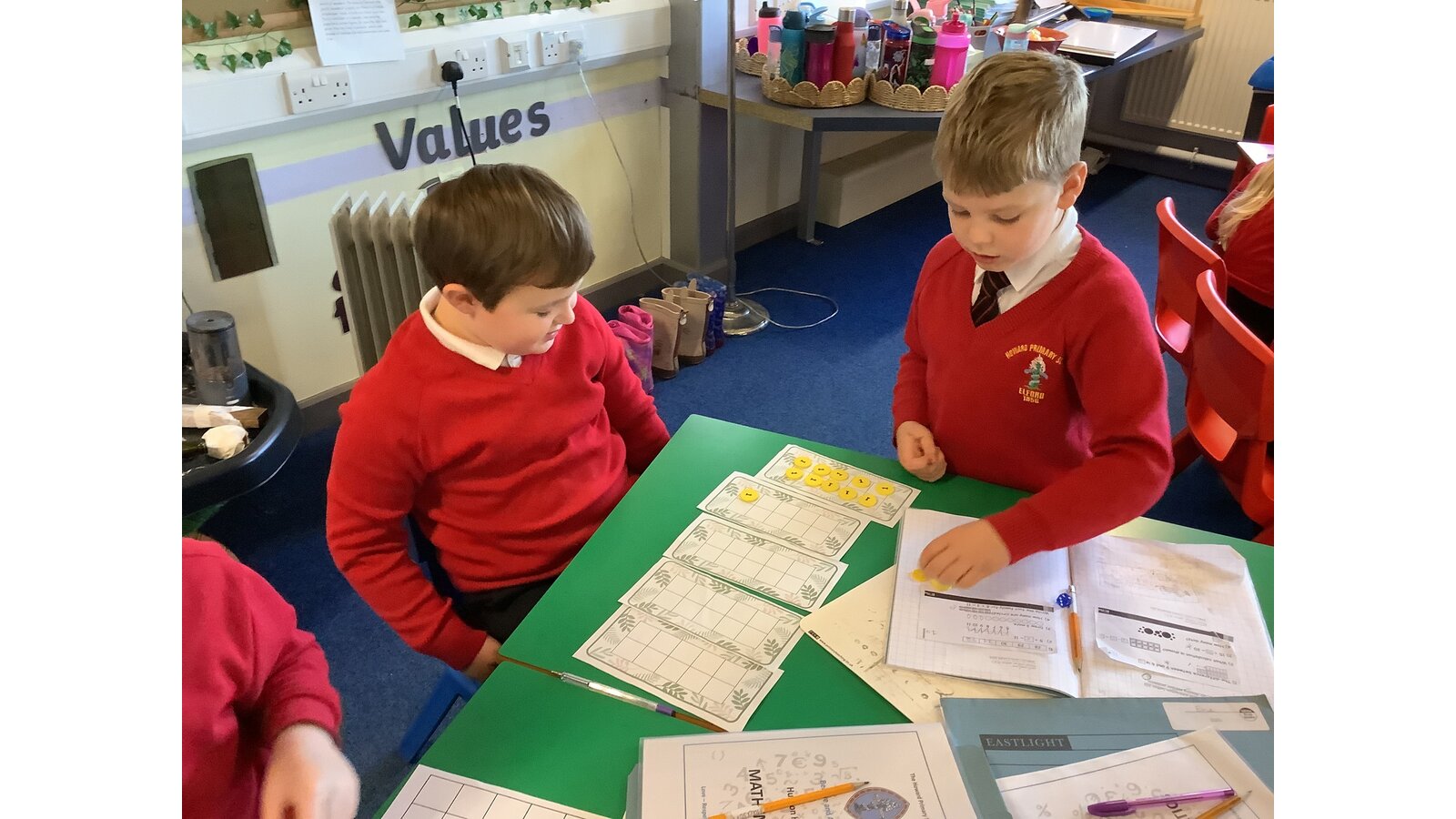 Class 2 are exploring place value beyond 20. They have enjoyed moving and singing a count by tens song followed by some practical count in tens games. Well done everyone.