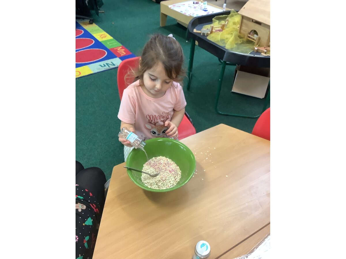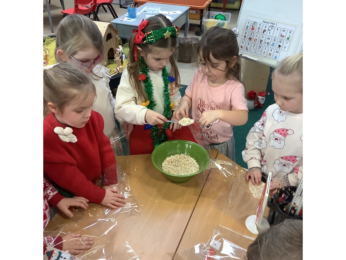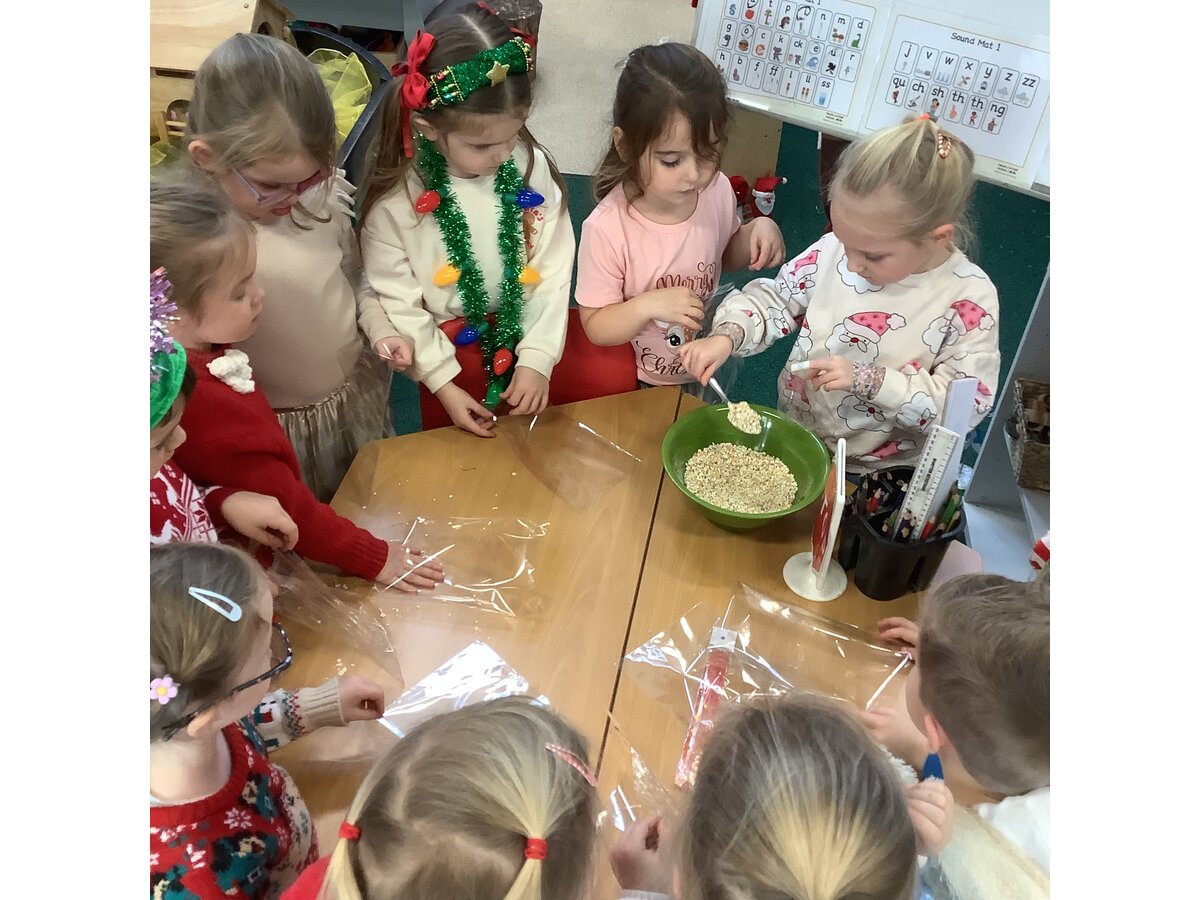 We have had a lovely morning in Class 1. We measured out some different amounts of our special reindeer food and sprinkled in some magic. The children then counted out the right amount of spoonfuls for their bags. Great work Class 1! Remember to sprinkle them outside for the reindeer on Christmas Eve before you go to bed.