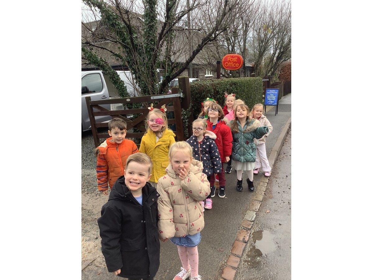 This morning we went on a very special walk to our local post office to post a very important letter. The children were so excited and walked beautifully down to the village hall. We purchased our stamps and stuck them on our envelopes. After that we posted them into the post office post bag, we walked back to school. The children really enjoyed our outing. Hopefully our special letters will arrive soon!
