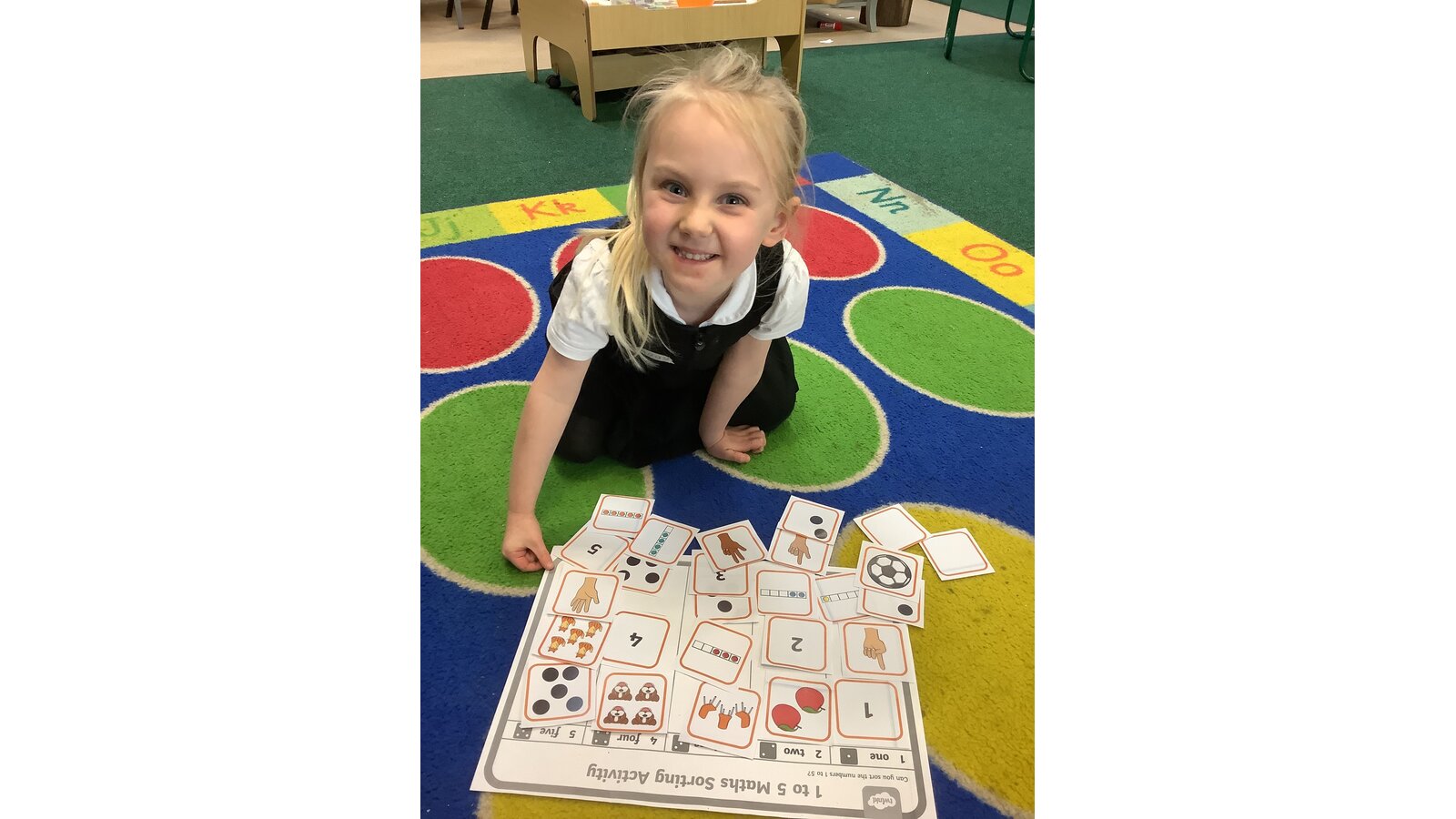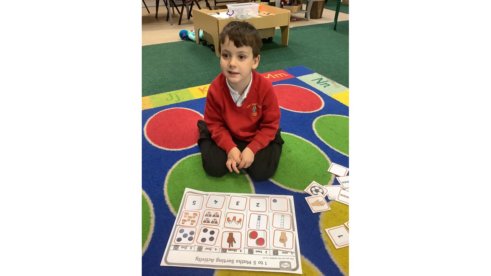 We have been working really hard in Maths this week. We started a new unit called ‘Alive in 5’ and are perfecting our understanding of the numbers 0-5. On Monday we met zero and over the next 2 weeks we are going to be learning all about the numbers up to 5, what they look like, 1 more or less than a number and subitising. Today we sorted the numbers into groups by recognising different ways that the numbers can be presented. Great work Class 1!