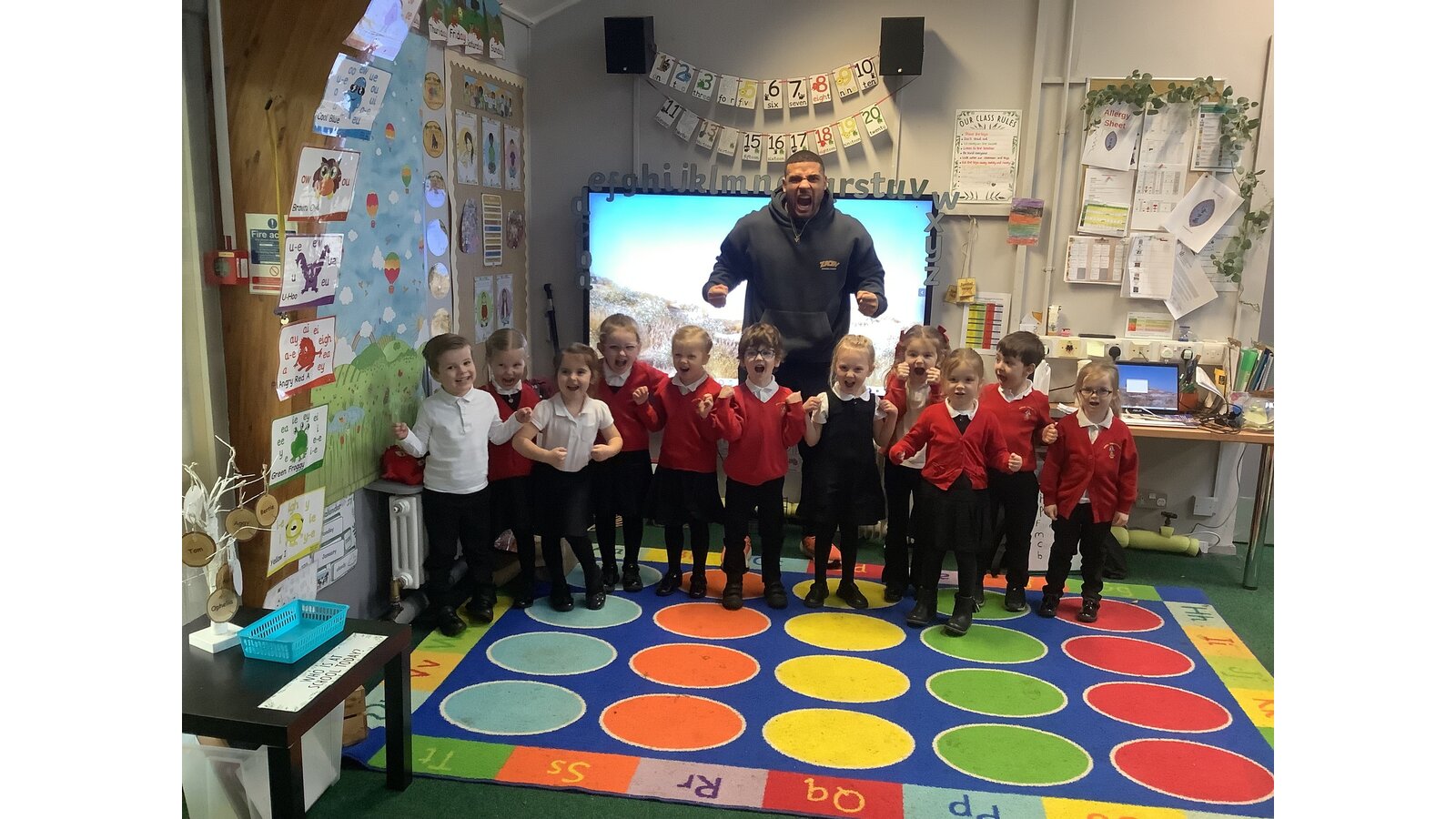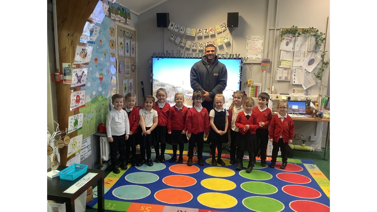We had a wonderful morning meeting the Gladiator Steel. We went into the hall with Class 2 and listened to Steel tell us all about being a Gladiator, how he keeps himself healthy and what made he decided he wanted to be a Gladiator. He also did a 30second hand stand which was very impressive!