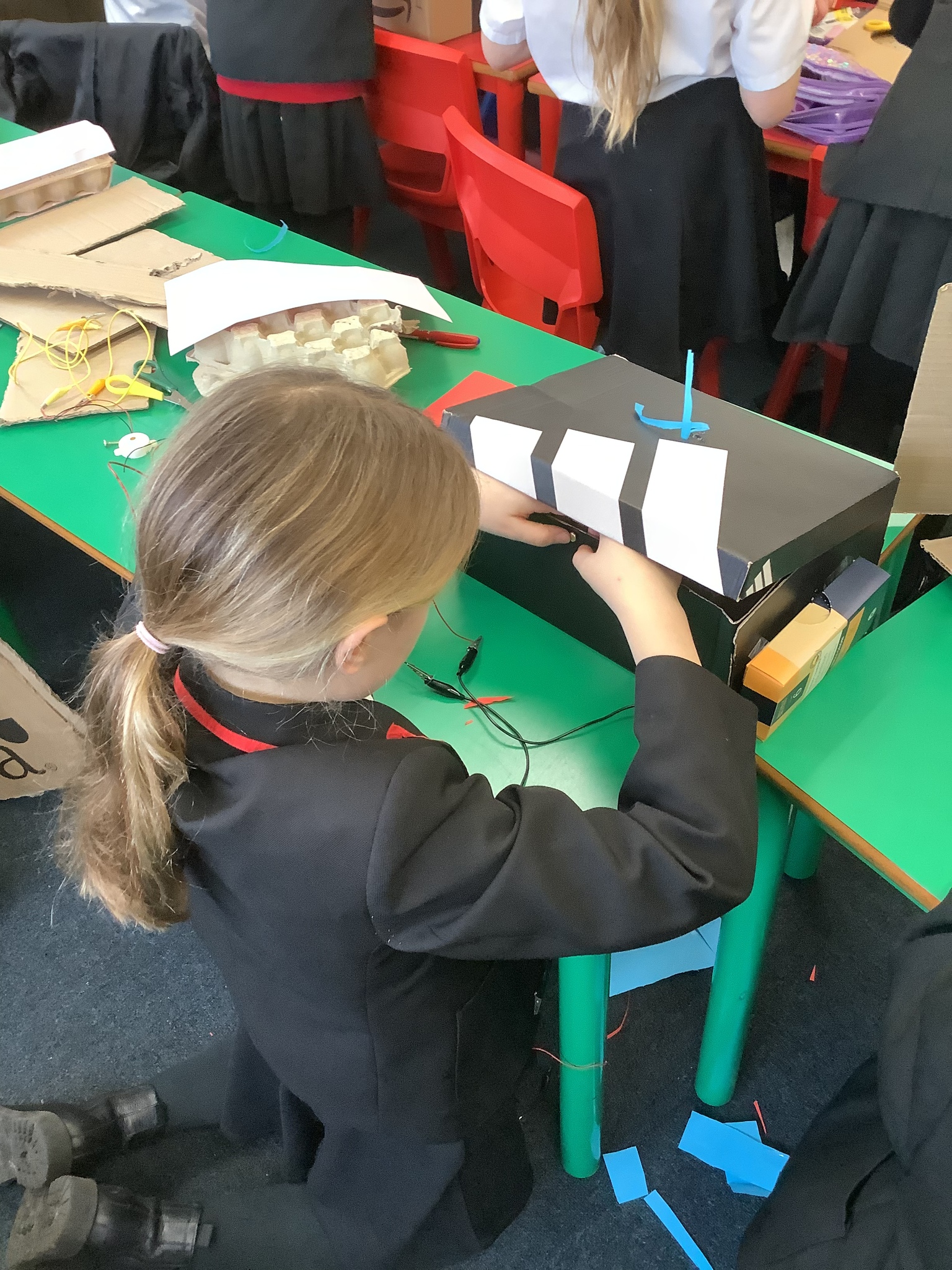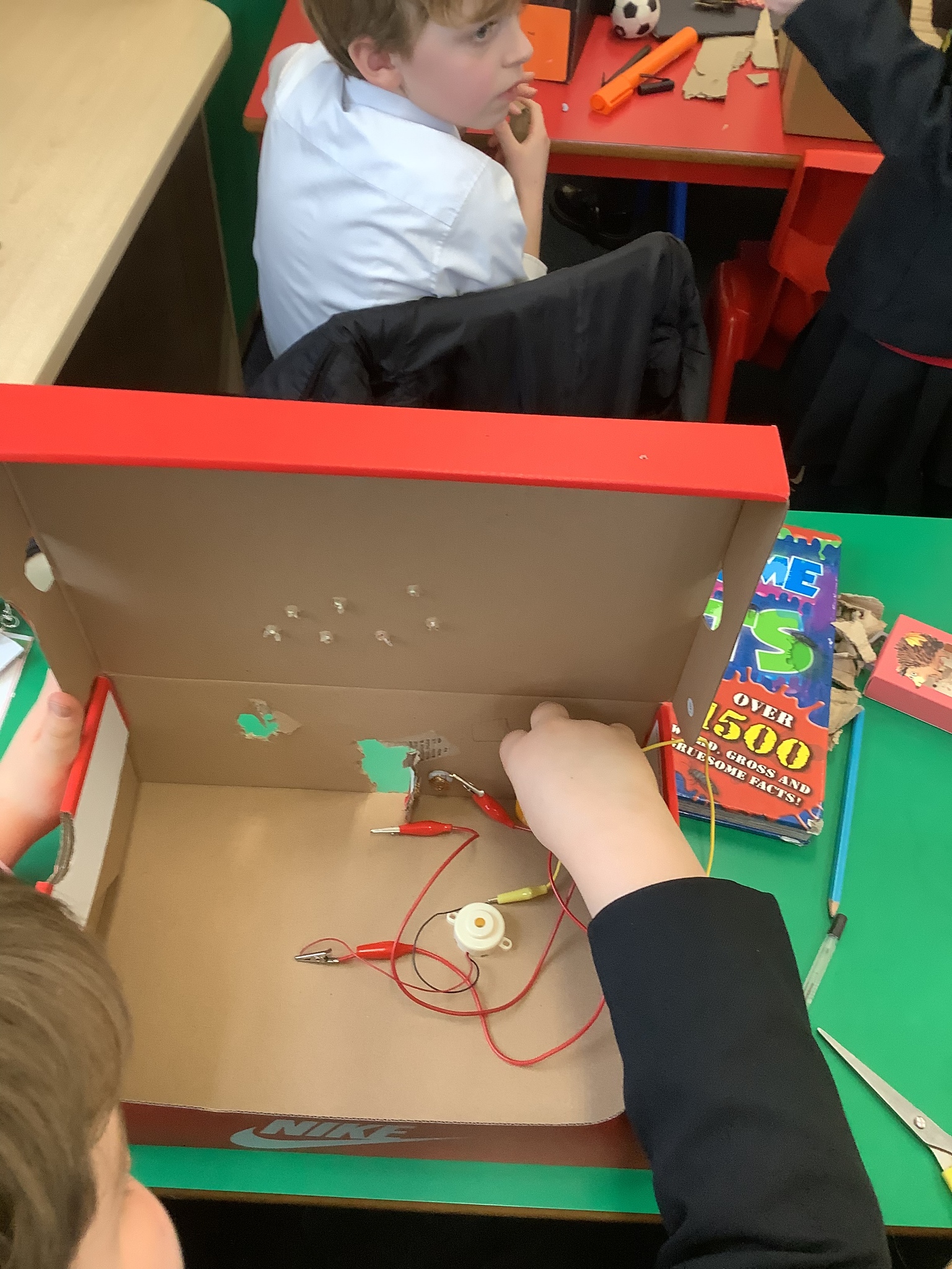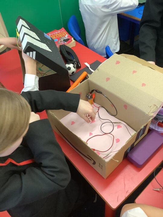 Today in DT we have been making alarm systems. We used our scientific knowledge of circuits to help us create alarms for a purpose.